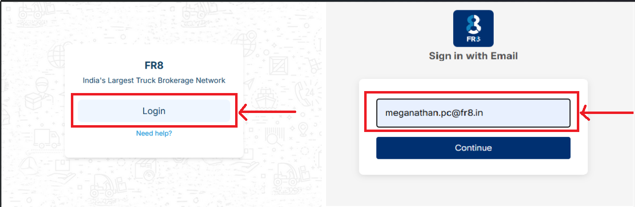 Step1: Click on the "Login" button then Enter the organization mail id in the mail Email field and click on "Continue" button